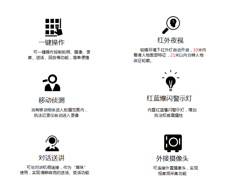dcbox小金库官网DSJ-200F 执法仪(法院/政府/城管)拍摄像素高达5000万,广角镜头137,拍摄画面精细而全面,大容量电池支持陆续在工作12小时不断电